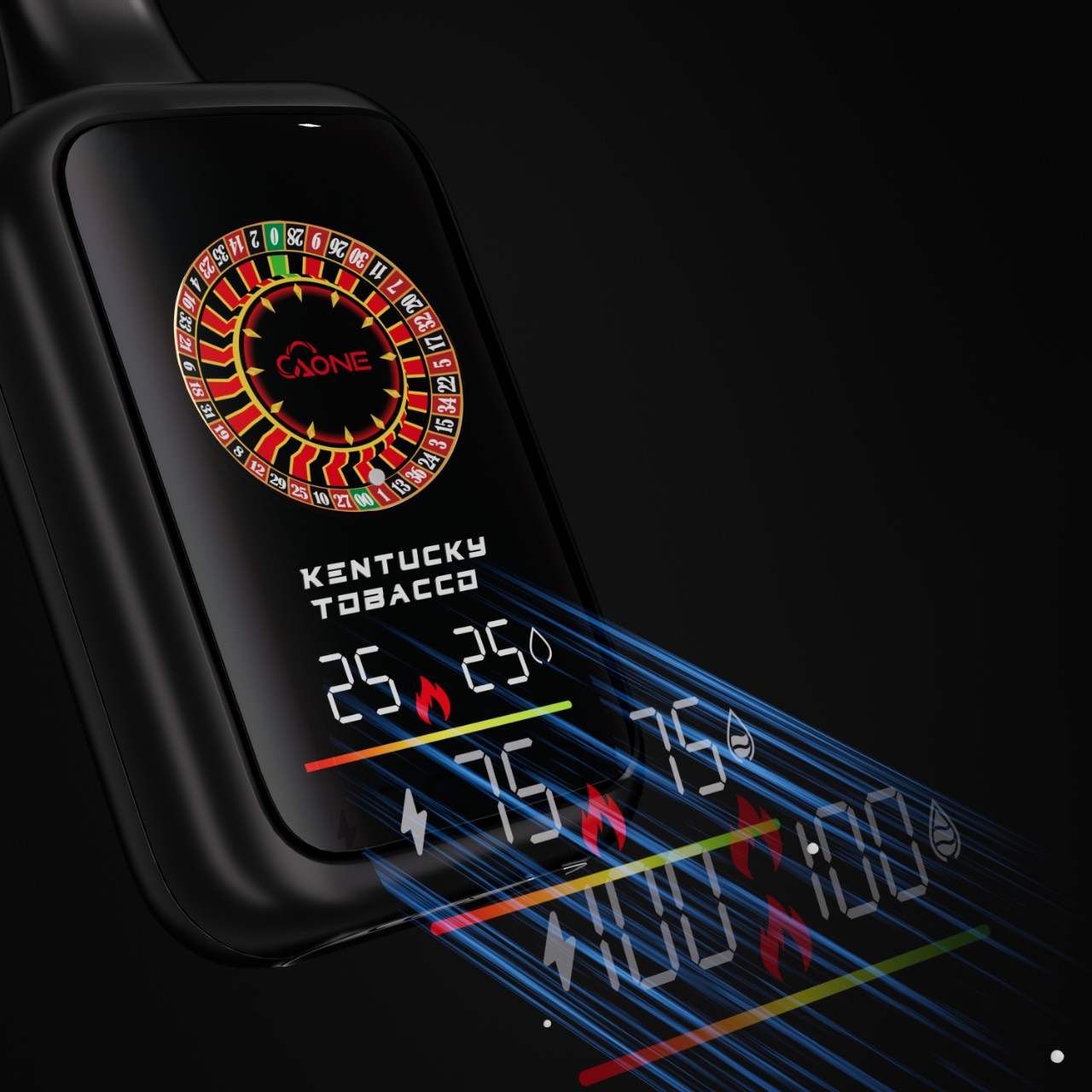 • 全視覺化智能管理:機身配備清晰螢幕,可100%實時顯示剩餘電量與煙油量,讓使用者對產品狀態一目了然,徹底告別盲猜電量與突然沒油的尷尬。底部的動態RGB氣氛燈更強化了產品的科技感與個性化視覺效果。